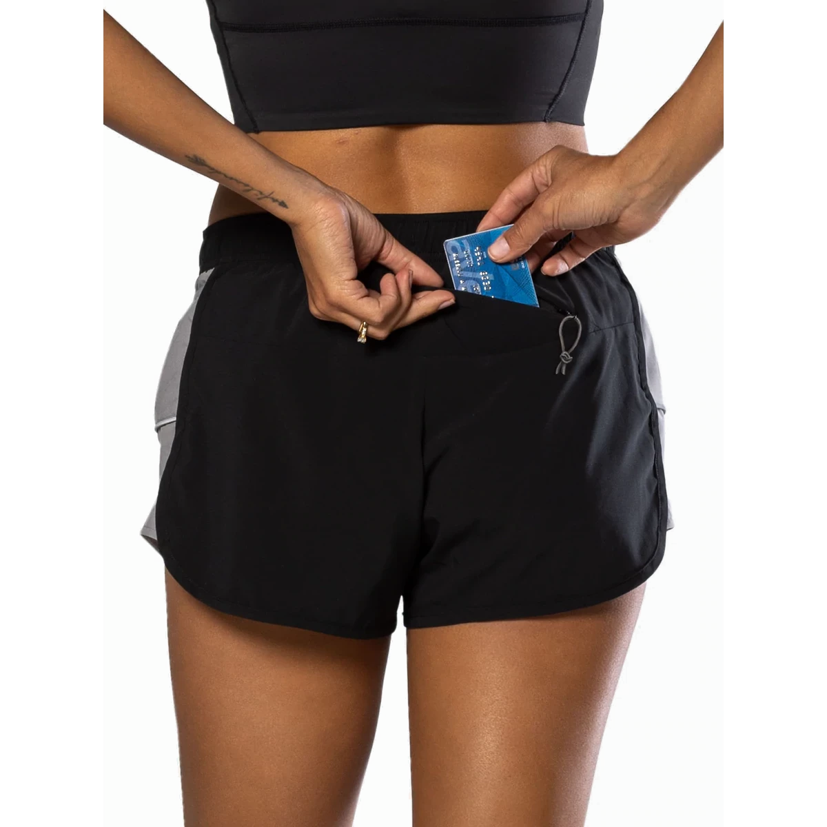 The ultimate lightweight essential short designed for running, workouts and everyday errands. Updated lightweight 2-way stretch exterior fabric and tonal binding at seams provide maximum comfort with a streamlined look. Side panel construction provide added style and improved freedom of movement.