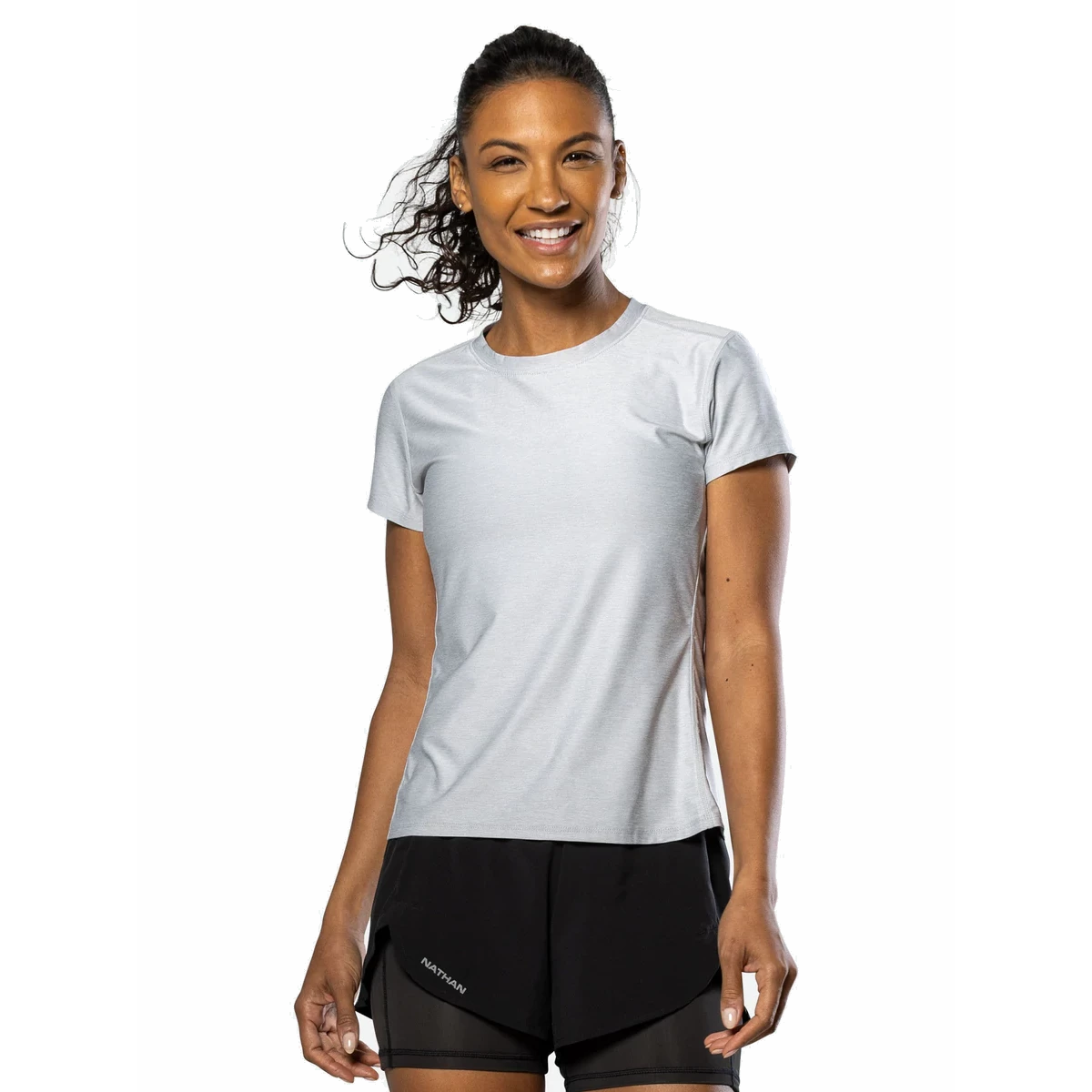 Nathan’s Women’s Qualifier Short Sleeve Shirt is a durable, soft heathered shirt designed for every day. Strategically placed side panels and flatlock seams do not rub or chafe and moves with you. The flattering fit transitions from running to casual wear effortlessly and will be favorite essential top.