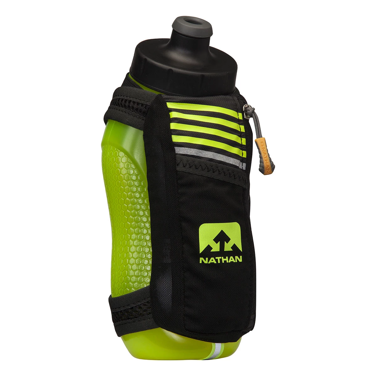 - Fully-adjustable hand strap with chafe-free thumbhole enables grip-free running