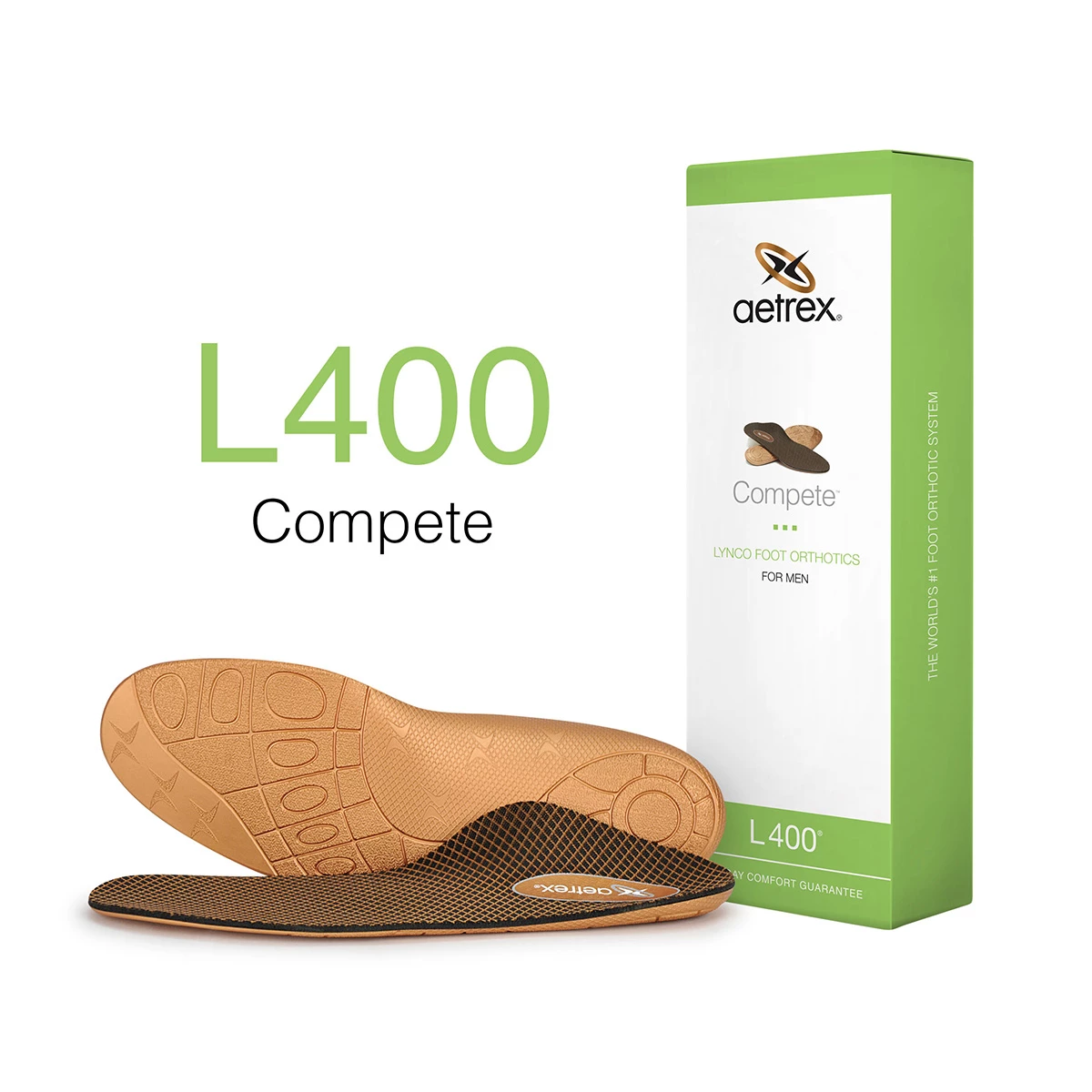 The men’s Aetrex L400 is a light-weight, resilient orthotic that provides superior cushioning, shock absorption and arch support during high impact activities. Each pair provides stability while you run and protect feet with advanced features clinically proven to help prevent common conditions such as Plantar Fasciitis, Arch Pain and Metatarsalgia.