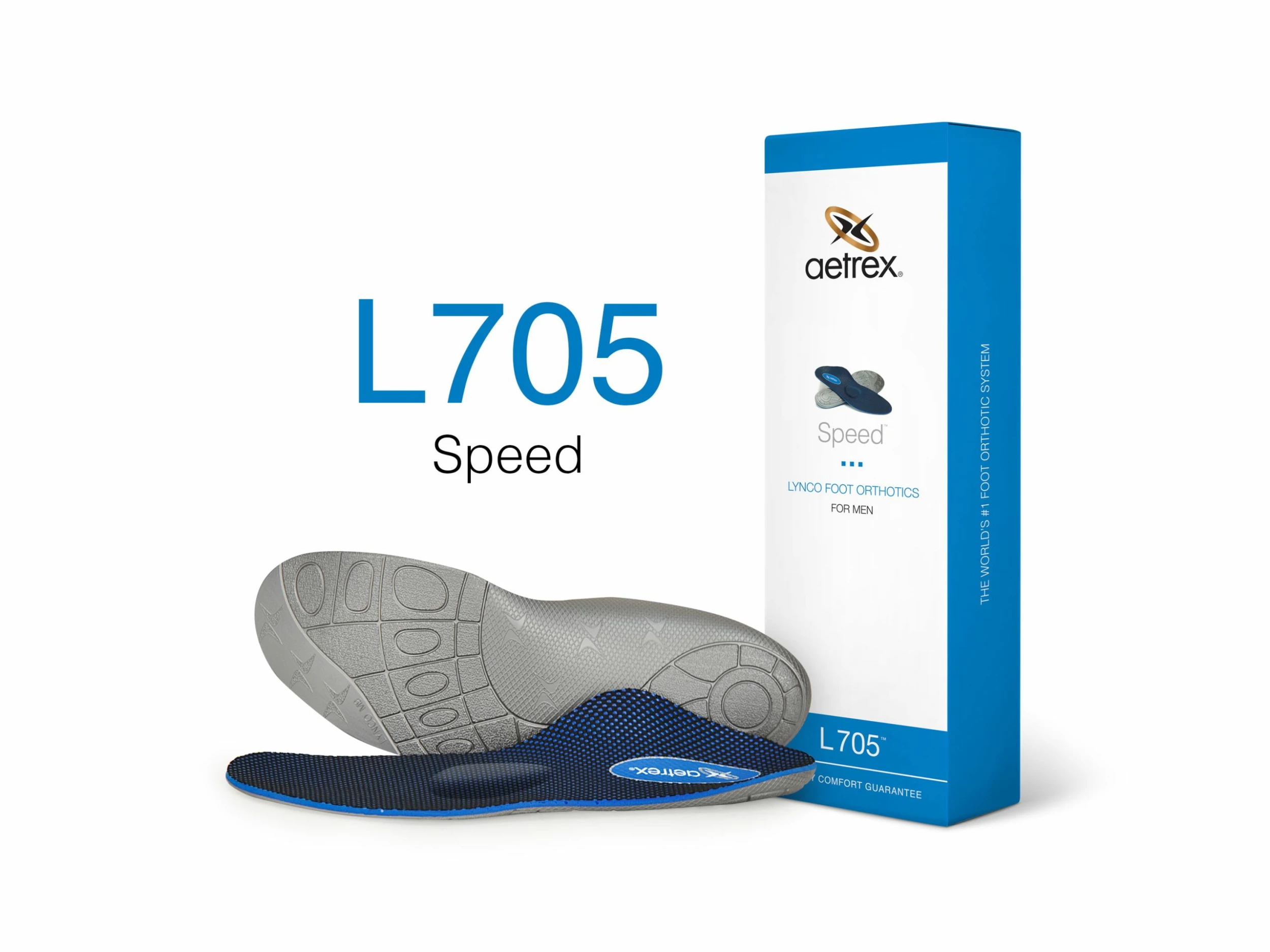 The men’s Aetrex L705 Speed Series are engineered for those looking to enhance their competitive edge. These hi-tech orthotics feature Aetrex’s exclusive ExoFoam layer to promote high energy return, maximize peak performance and help you reach a new personal best. Lynco Speed Orthotics offer the most light-weight base in the Lynco collection and an anti-microbial film to help keep your feet healthy and clean. They also feature a strategically placed arch support to help biomechanically align your body & help prevent common injuries such as Plantar Fasciitis, Arch Pain and Metatarsalgia.