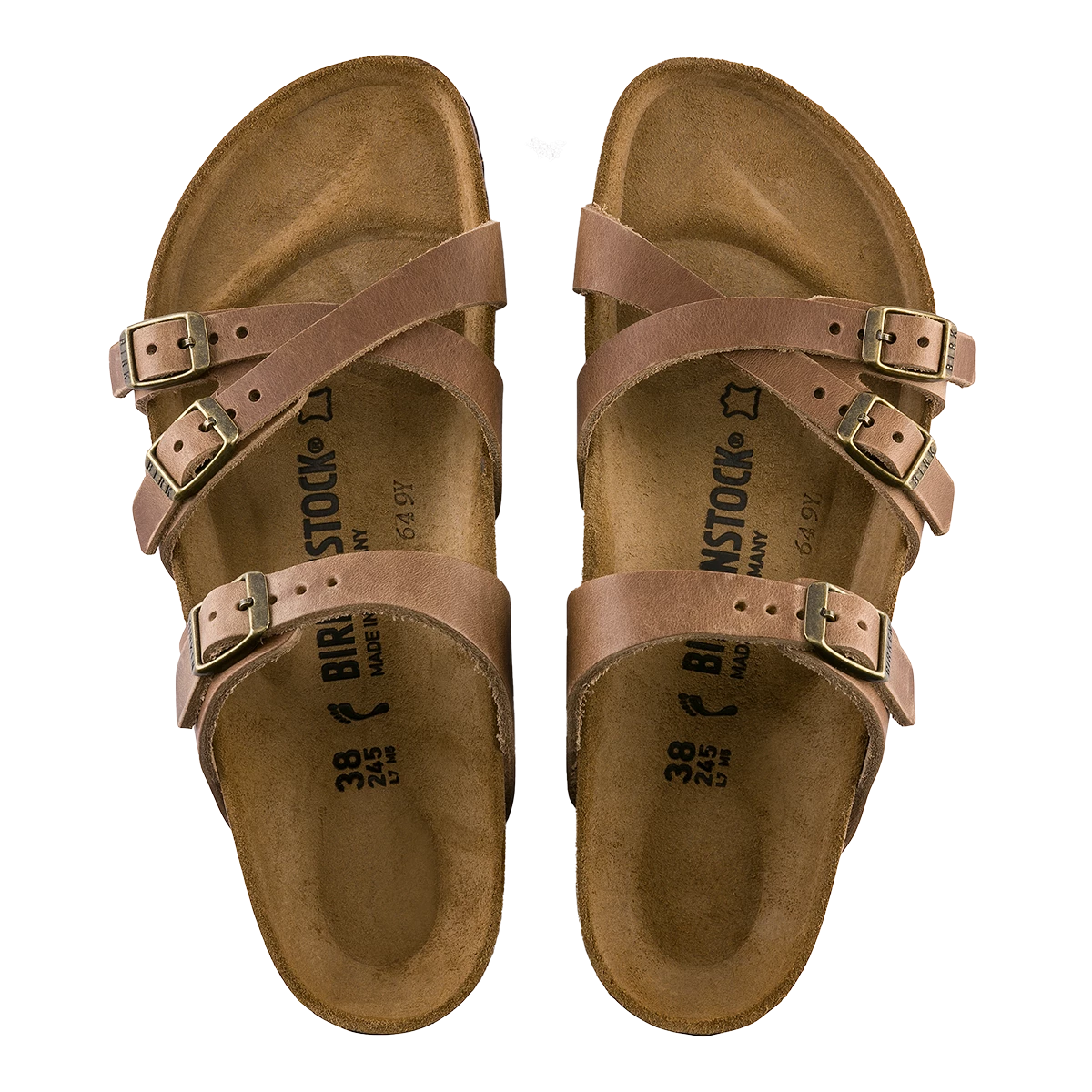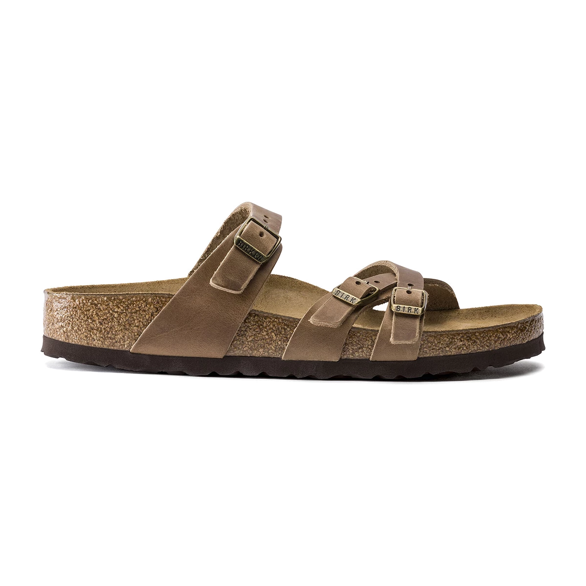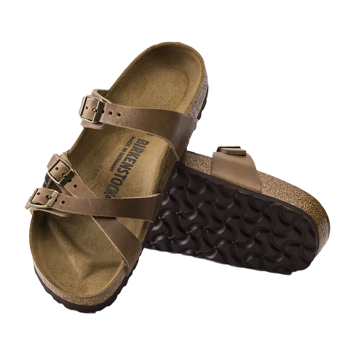 The BIRKENSTOCK Franca is an elegant model designed with slim, stylish crisscrossed straps. Featuring an impressive combination of design and wearability for all day comfort. The upper is made from extra thick, oiled nubuck leather.