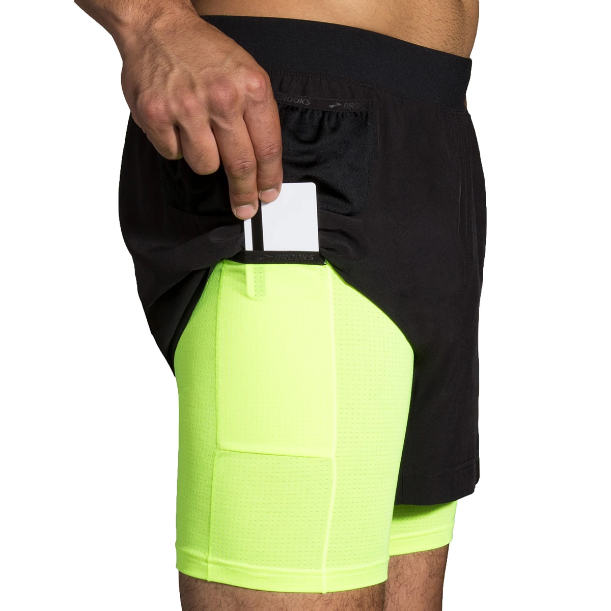 Why buy shorts with only one function when you could grab a pair of the Brooks Carbonite 2-in-1 short? With its supportive, sweat-wicking 8” boxer brief underneath and highly visible, reflective 5″ shorts on top, you’ll never want to run in anything else. Drop-in side pockets and a drop-in liner pocket allow you to store your essentials. With 3Mâ„¢ Scotchliteâ„¢ Carbon Black Stretch reflectivity in critical motion zones, drivers and pedestrians alike will be able to see you as a runner in motion. Plus, the shorts are made from recycled fabric equal to 11 plastic water bottles.