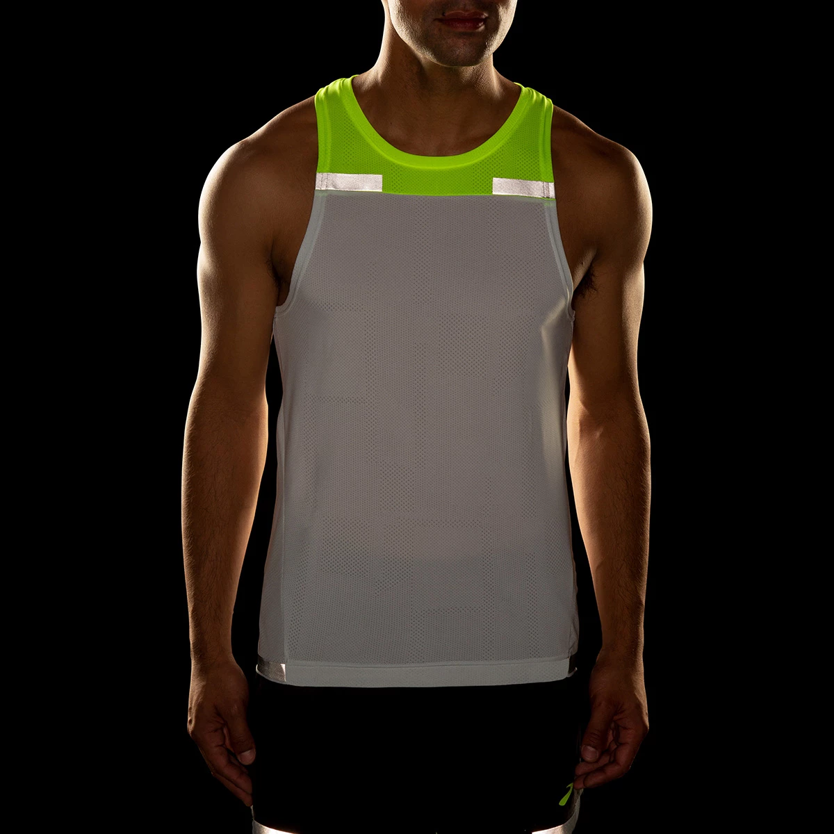 You know those runs where you sweat so much your shirt feels 5 pounds heavier by the time you’re done? Us too (and we don’t like it). Never experience that feeling again with the Men’s Brooks Carbonite Tank. It’s made with DriLayer® that fabric wicks sweat super fast – it feels dry in under six minutes! – to keep you cool in hot weather. Plus, 3Mâ„¢ Scotchliteâ„¢ Carbon Black Stretch reflectivity in critical motion zones helps drivers recognize you as a runner in motion. Plus, the tank is made from recycled fabric equal to 12 plastic water bottles.