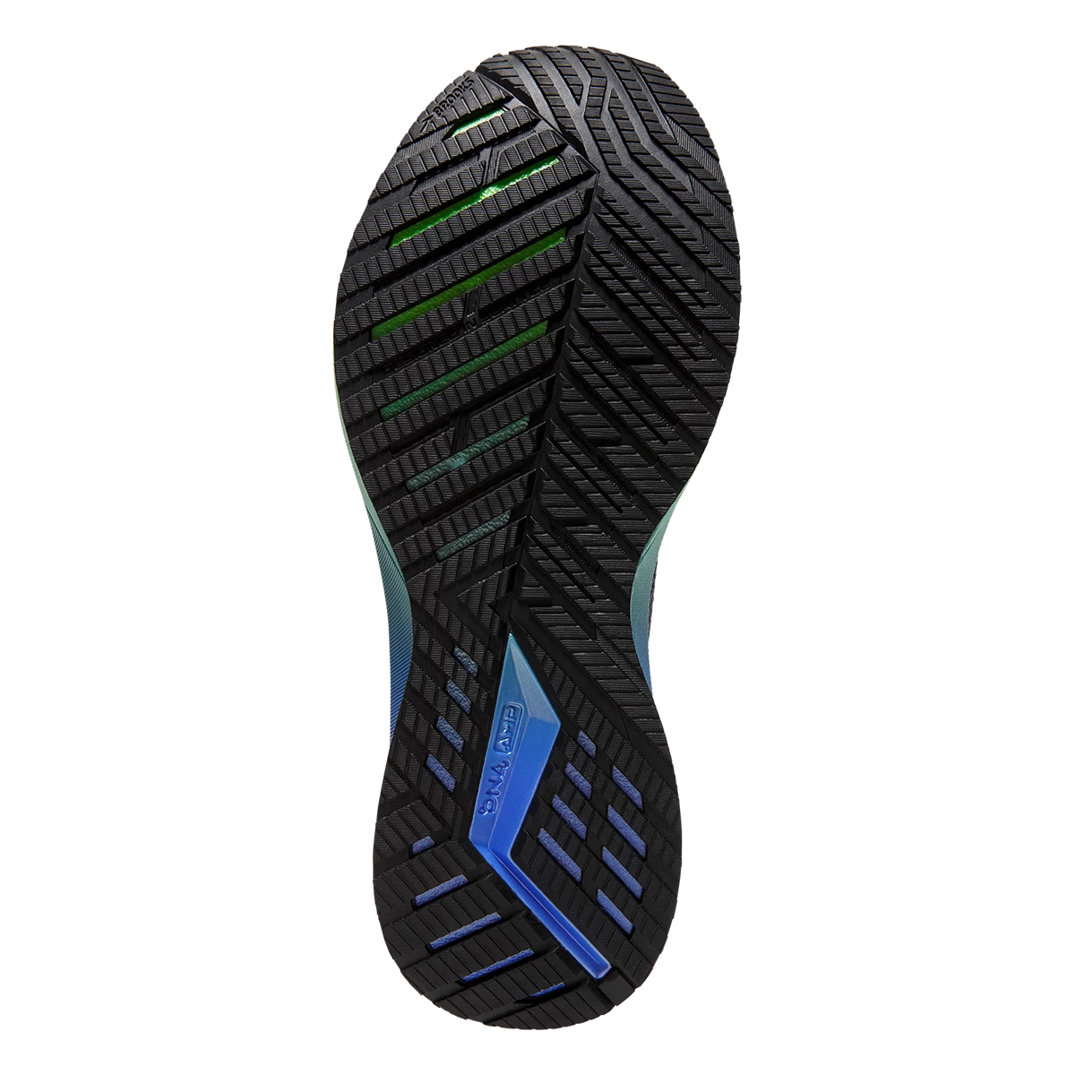 - Quick Transitions: The arrow-point pattern in the outsole lets your foot move quickly from heel to toe, enhancing the shoe’s springy feel. Quick transitions help reduce your ground contact times, keeping your stride quick and efficient.