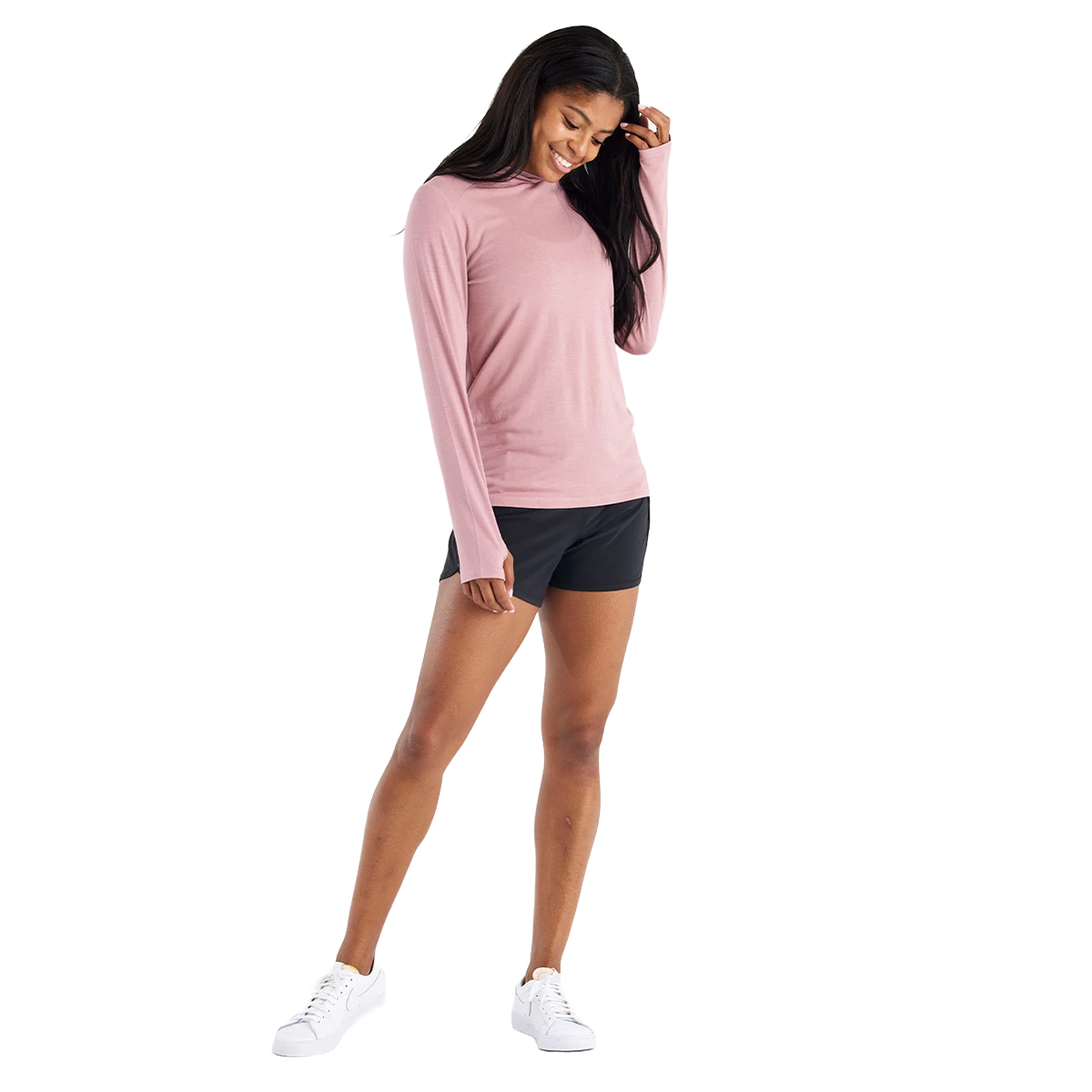 Same amazing buttery soft, stretchy fabric that you know and love, but with an improved fit and design. We’ve minimized the seams to create a clean look, added a little more room in the body, brought the hem length up slightly, and elevated the hood with a streamlined semi-crossover fit. All in all, we know you’re going to love how the new Shade II looks as much as how it feels.