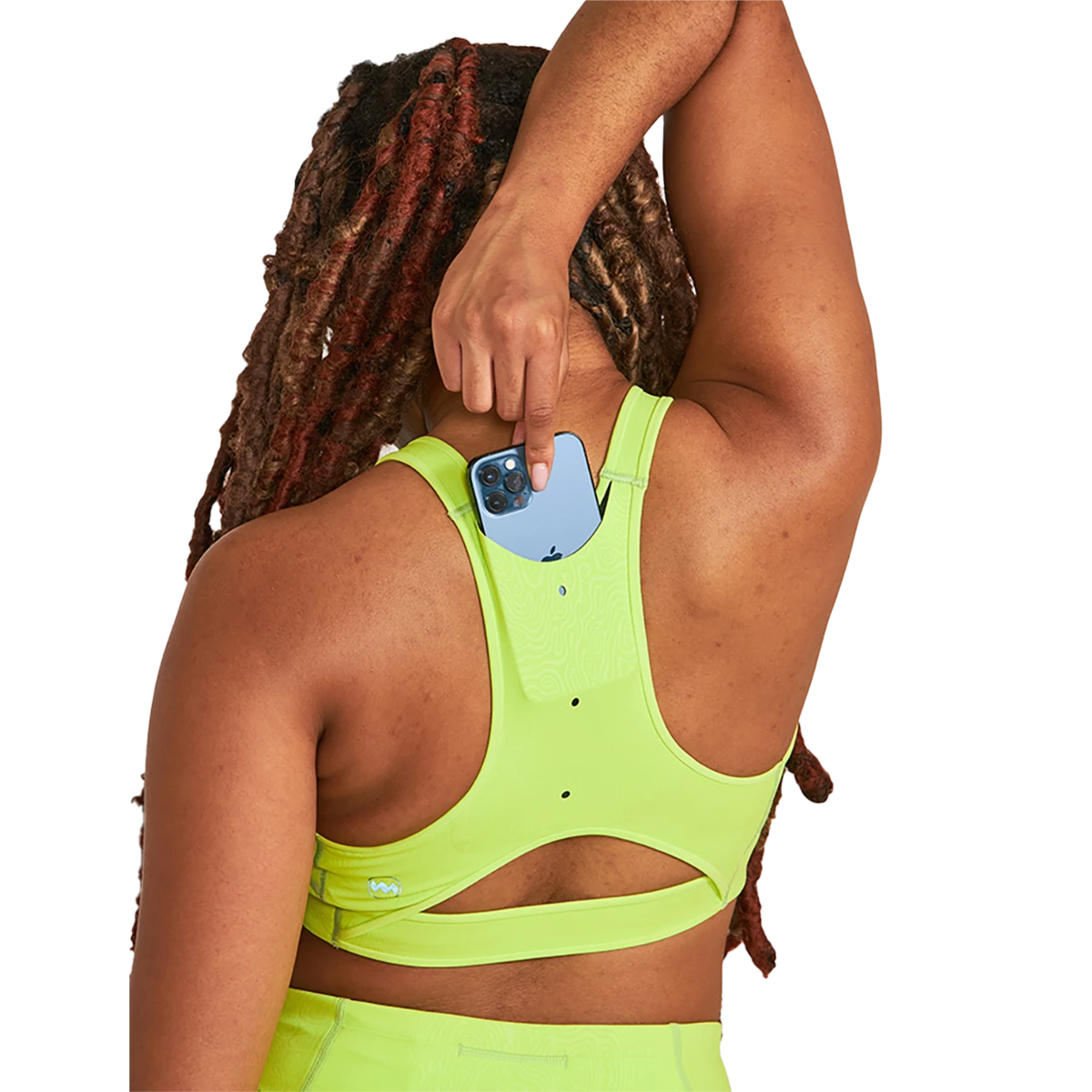- Comfortable carrying capacity Powermesh-reinforced racerback pocket carries phone comfortably without bounce—