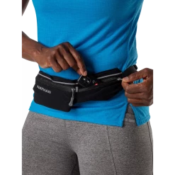 Designed for runs from every day to race day, the Mirage Pak Plus Adjustable Belt carries your bare essentials in a compact and sleek running pak and now includes race number attachments. Clip on your belt, fill it with what you need and set off to blaze a new trail. Perfect for runners, walkers, joggers or anyone who don’t like to feel weighted down.