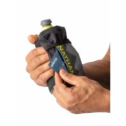 Designed as the ultimate hydration handheld ideal for running, hiking, walking and other sports. The QuickSqueeze 12oz Handheld features a grip-free, fully adjustable hand strap and storage for your phone and more.