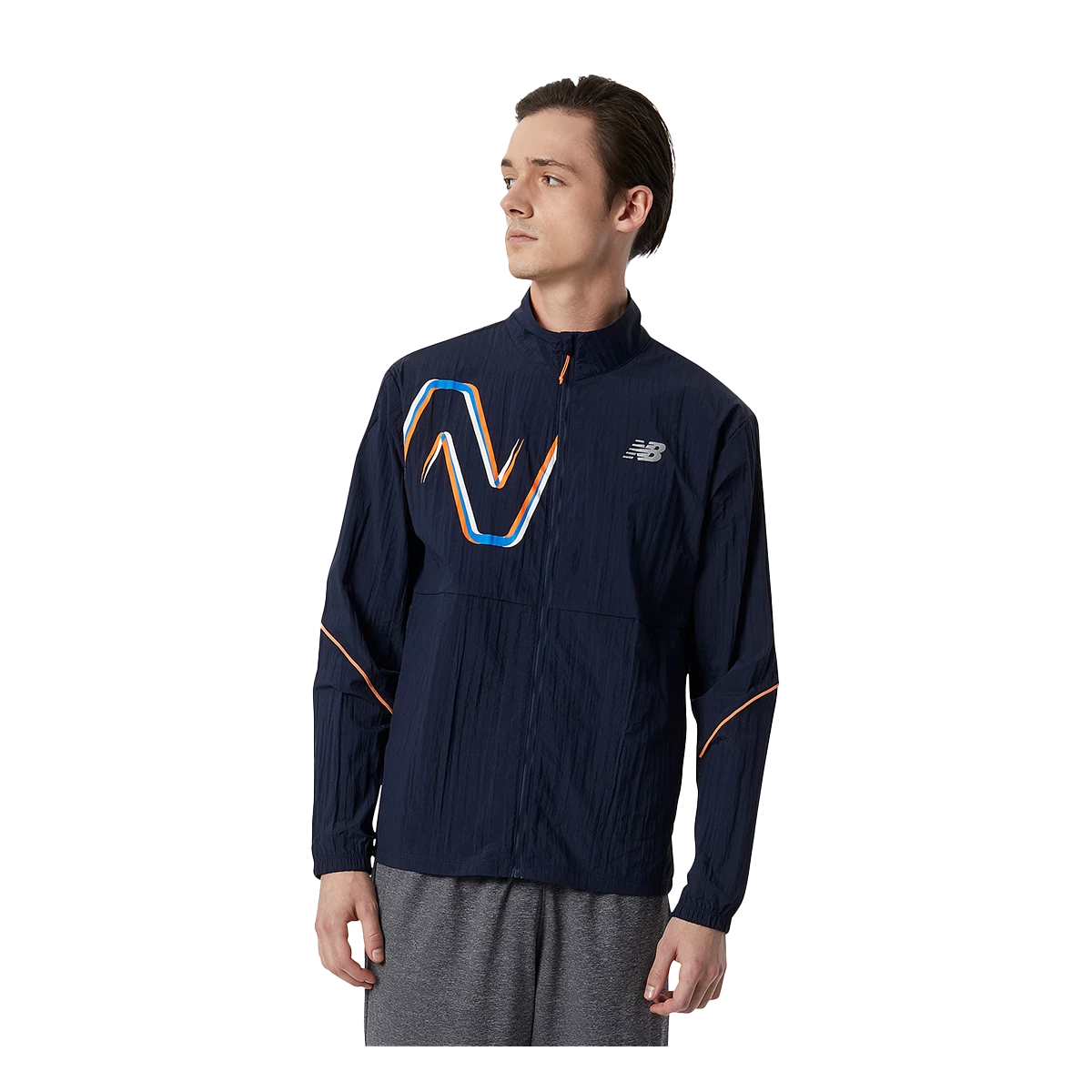 The New Balance United Airlines NYC Half Graphic Impact Run Jacket has a lightweight polywoven shell with wind and water resistance to act as a protective layer when you’re running in changeable weather. This men’s running jacket has a packable pocket that transforms it into a waist pack for effortless storage and includes reflective details for style. Finished with exclusive United Airlines NYC Half Marathon branding to commemorate the event.