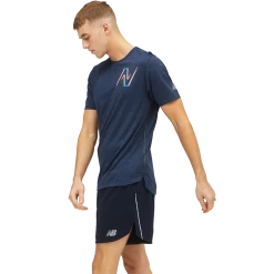 MEN’S NEW BALANCE® IMPACT RUN GRAPHIC SHORT SLEEVE :: Stay fresh, stay green, and stand out in the Men’s New Balance Impact Run Short Graphic Sleeve. Green Leaf Standard material and ICEx technology offers cool relief and breathability while staying light so you can comfortably maintain speed. Featuring a stylish New Balance Graphic on the chest and reflective 4mm piping down the side body, you get optimized visibility without sacrificing performance. Light up the road from sunup to sundown.