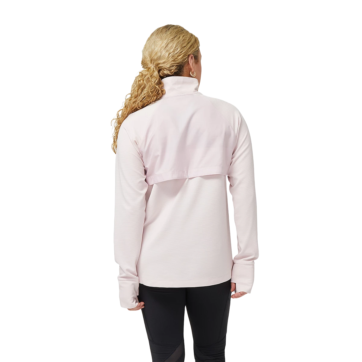 The New Balance Q Speed Shift 1/2 Zip is made with textured warming fabric to help keep you comfy no matter where you want to run. This women’s half-zip layer features a relaxed fit and power mesh-lined protective woven venting on the back for added airflow. Reflective trim catches the light for a sleek, stylish look.