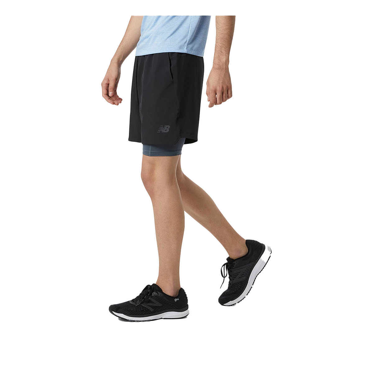In or out of the gym, our R.W.Tech 7in 2-in-1 Short is built for mobility as you transition between workouts. These men’s training shorts feature a soft, lightweight stretch woven shell over a built-in inner short. NB DRY moisture wicking helps to keep you cool and comfortable, while a pocket on the inner short provides convenient storage.