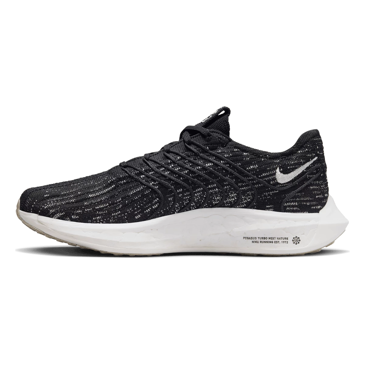 Let the Nike Pegasus Turbo Next Nature help you log the hard miles. Made with at least 50% recycled content by total weight of product, this esteemed stallion gives you a stretchy, just-right feel. Complete with lighter, responsive foam, it’s made to help you increase tempo without sacrificing comfort as you push toward a personal best.