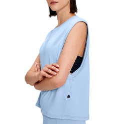 - Freeing movement. Open sides ensure maximum airflow, and minimal distraction. And, of course, the technical fabric is sweat wicking to keep that free, airy feeling going through your morning class and the day ahead.