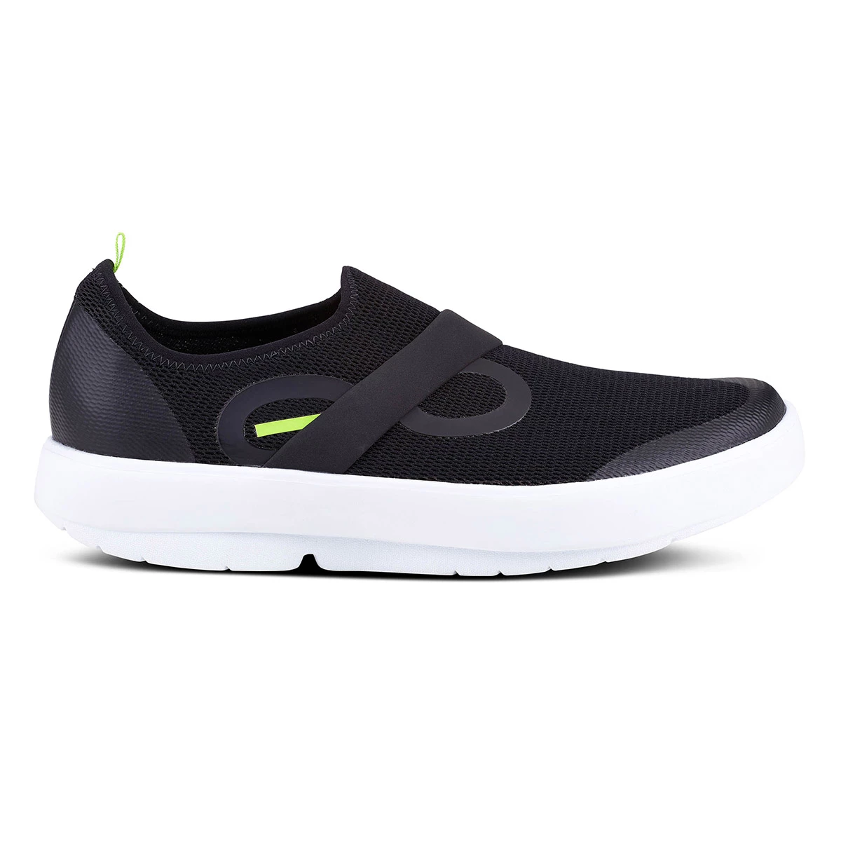 The men’s OOfos OOmg shoe features revolutionary OOfoam technology that absorbs 37% more impact than traditional footwear foam materials to reduce the stress on your feet and joints. This technology aids in the recovery process and creates an incredibly comfortable shoe you can wear anywhere. The breathable 4-way stretch fabric allows for an incredibly comfortable shoe you won’t want to take off.
