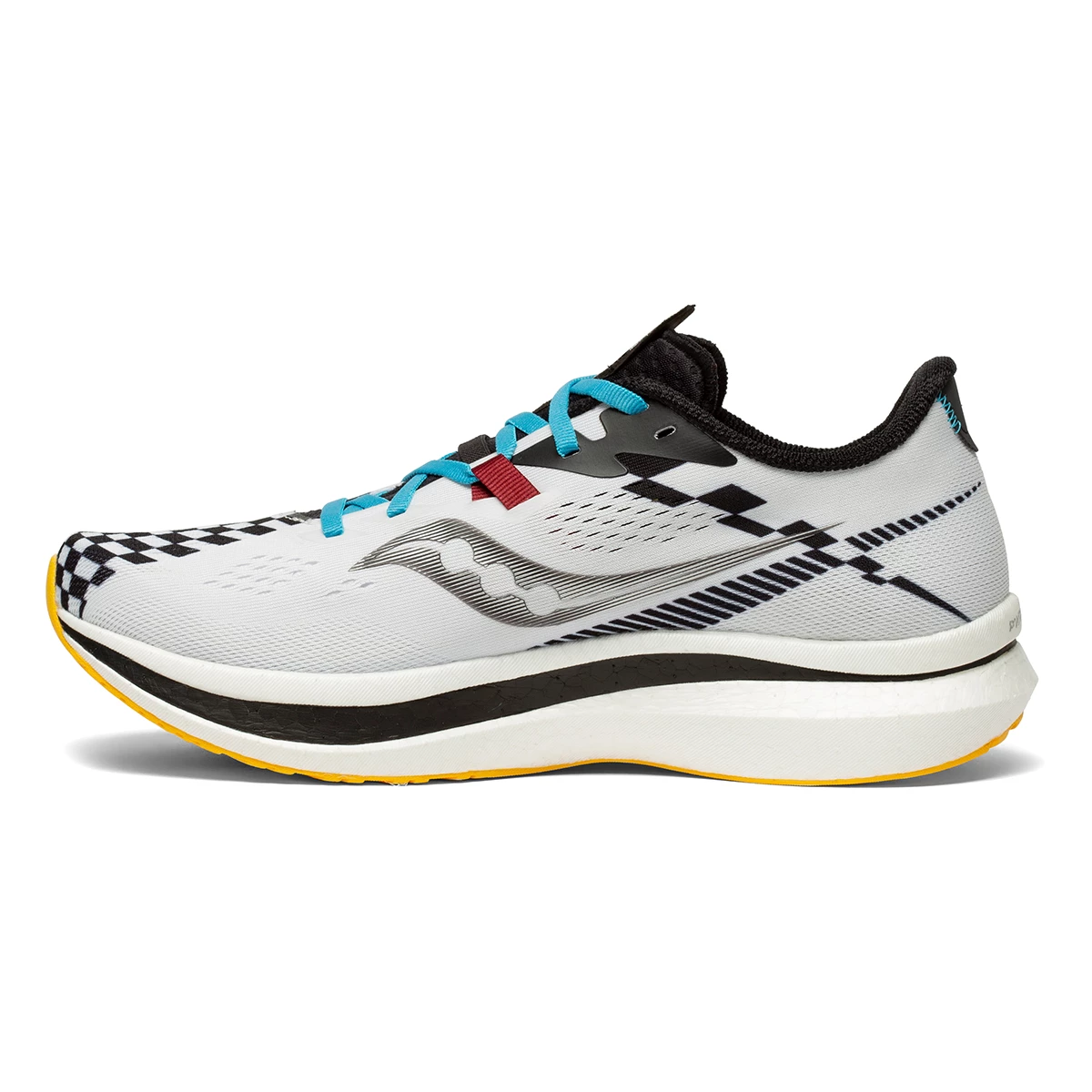 Faster than your wildest dreams. It debuted at the head of the pack, and now the Endorphin Pro 2 is here to rewrite your race pace. Again. Improved fit and support let you focus on the finish line, while our wining combo of ultralight PWRRUN PB and a carbon fiber plate propel you there at top speed.
