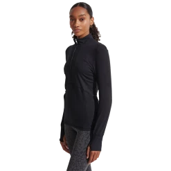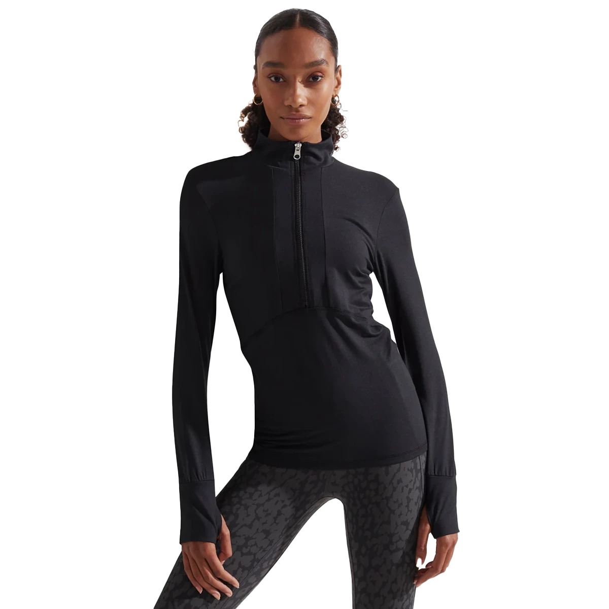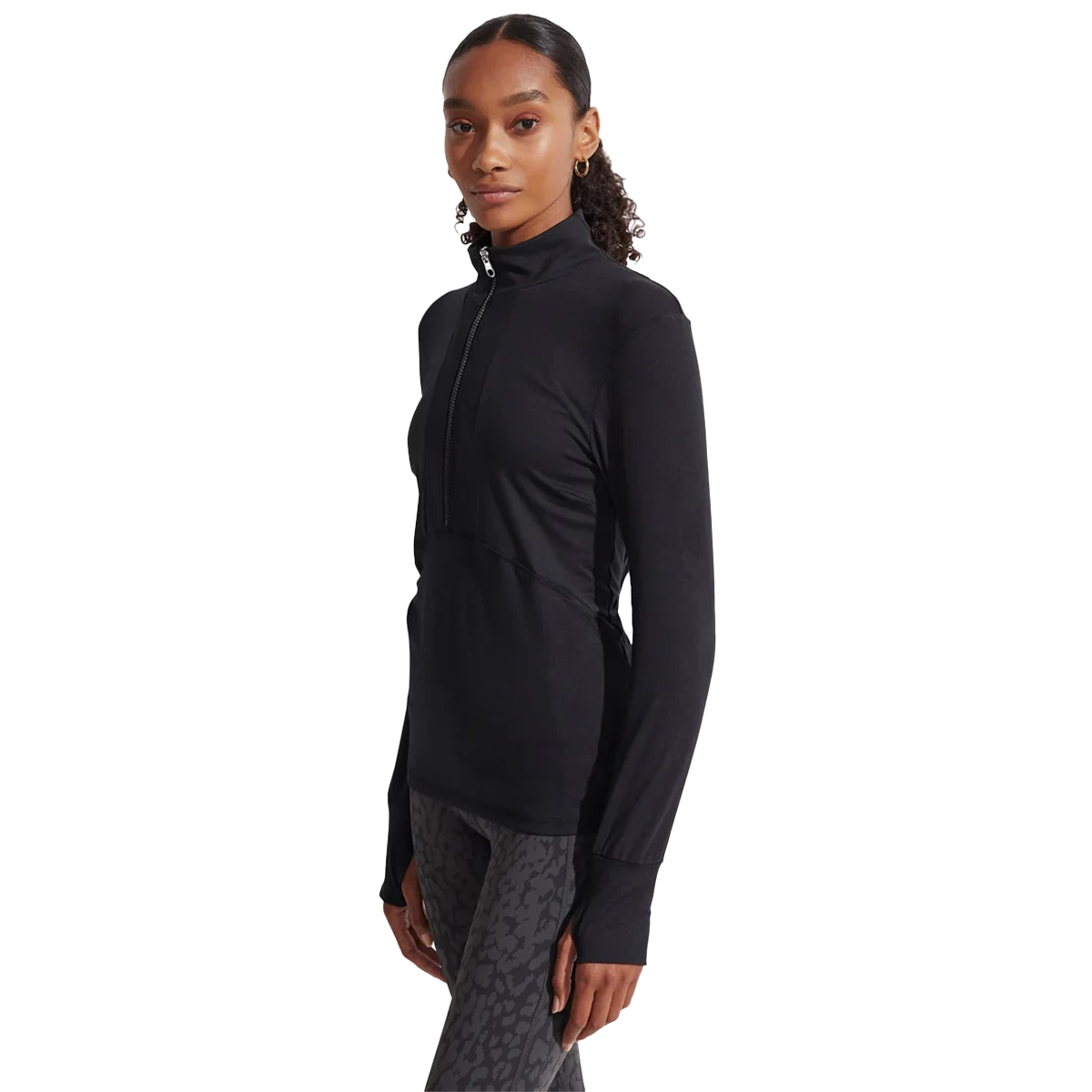 A lightweight, fitted, half-zip midlayer with flattering, curved panelling.